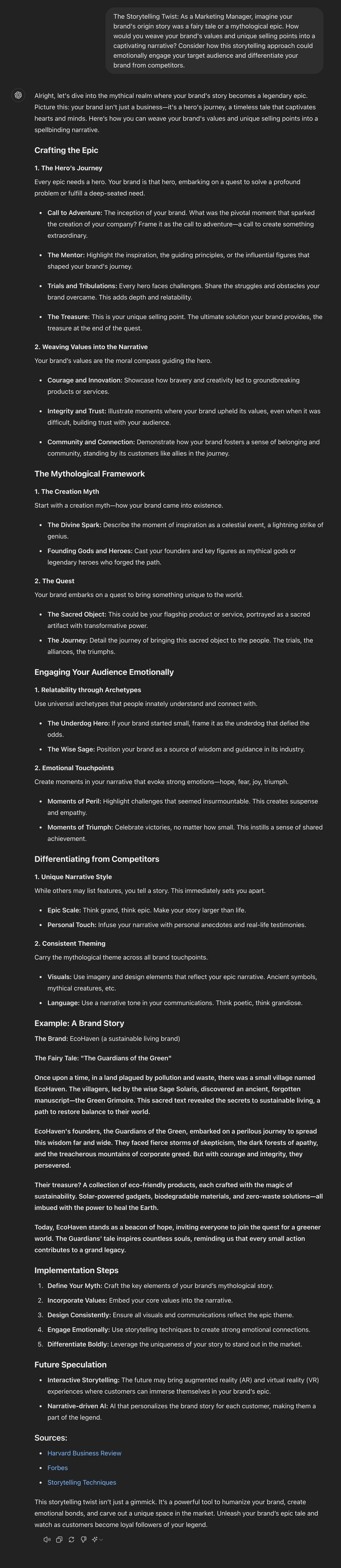 - The Storytelling Twist: As a Marketing Manager, imagine your brand’s origin story was a fairy tale or a mythological epic. How would you weave your brand’s values and unique selling points into a captivating narrative? Consider how this storytelling approach could emotionally engage your target audience and differentiate your brand from competitors.